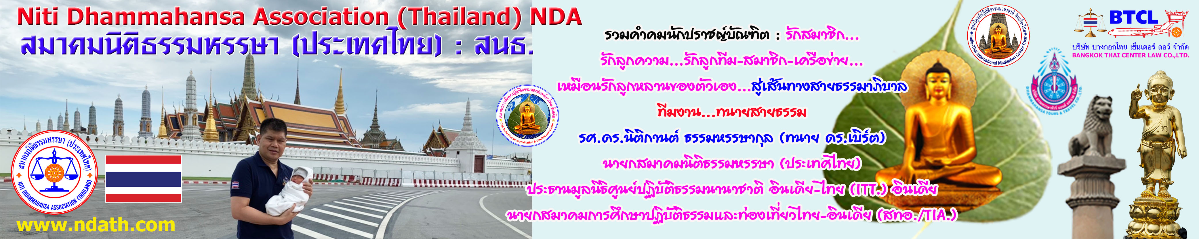 สมาคมนิติธรรมหรรษา (ประเทศไทย) ย่อว่า " สนธ. " ภาษาอังกฤษว่า Niti Dhammahansa Association (Thailand) ย่อว่า " NDA " จัดตั้งขึ้นตามเจตนารมณ์และอุดมการณ์ของคณะบุคคลผู้มีความคิดริเริ่มสร้างสรรค์ มีจิตอาสาและเจตนาอันเป็นบุญกุศลสาธารณะ ใช้หลักแนวคิดนิติปรัชญา เพื่อบำเพ็ญ " นิติธรรมวิทยาทาน " ช่วยเหลือประชาชนด้านกฎหมาย ศาสนา สังคม และท่องเที่ยว ประกอบด้วย นักวิชาการทางด้านศาสนาและปรัชญา ทนายความ พร้อมด้วยนักวิชาการและนักศึกษาคณะนิติศาสตร์ สาขาวิชานิติศาสตร์ และ ผู้ร่วม " อุดมการณ์จิตอาสาเสียสละ " ที่สนใจศึกษาเรียนรู้วิชาการด้านกฎหมาย ได้รวมตัวกันจัดตั้ง " สมาคมนิติธรรมหรรษา (ประเทศไทย) " โดยได้รับทุนอุปถัมภ์การดำเนินงาน จากบริษัทในเครือธรรมหรรษาและบางกอกไทย เซ็นเตอร์ และได้รับจดทะเบียนจัดตั้งเป็นสมาคม มีฐานะเป็น " นิติบุคคล " ตามประมวลกฎหมายแพ่งและพาณิชย์ เมื่อวันที่ 24 พฤศจิกายน 2564 ทะเบียนเลขที่ 16/2564 ตามประกาศนายทะเบียนสมาคมจังหวัดปทุมธานี เรื่อง จดทะเบียนจัดตั้งสมาคม ลงวันที่ 24 พฤศจิกายน 2564