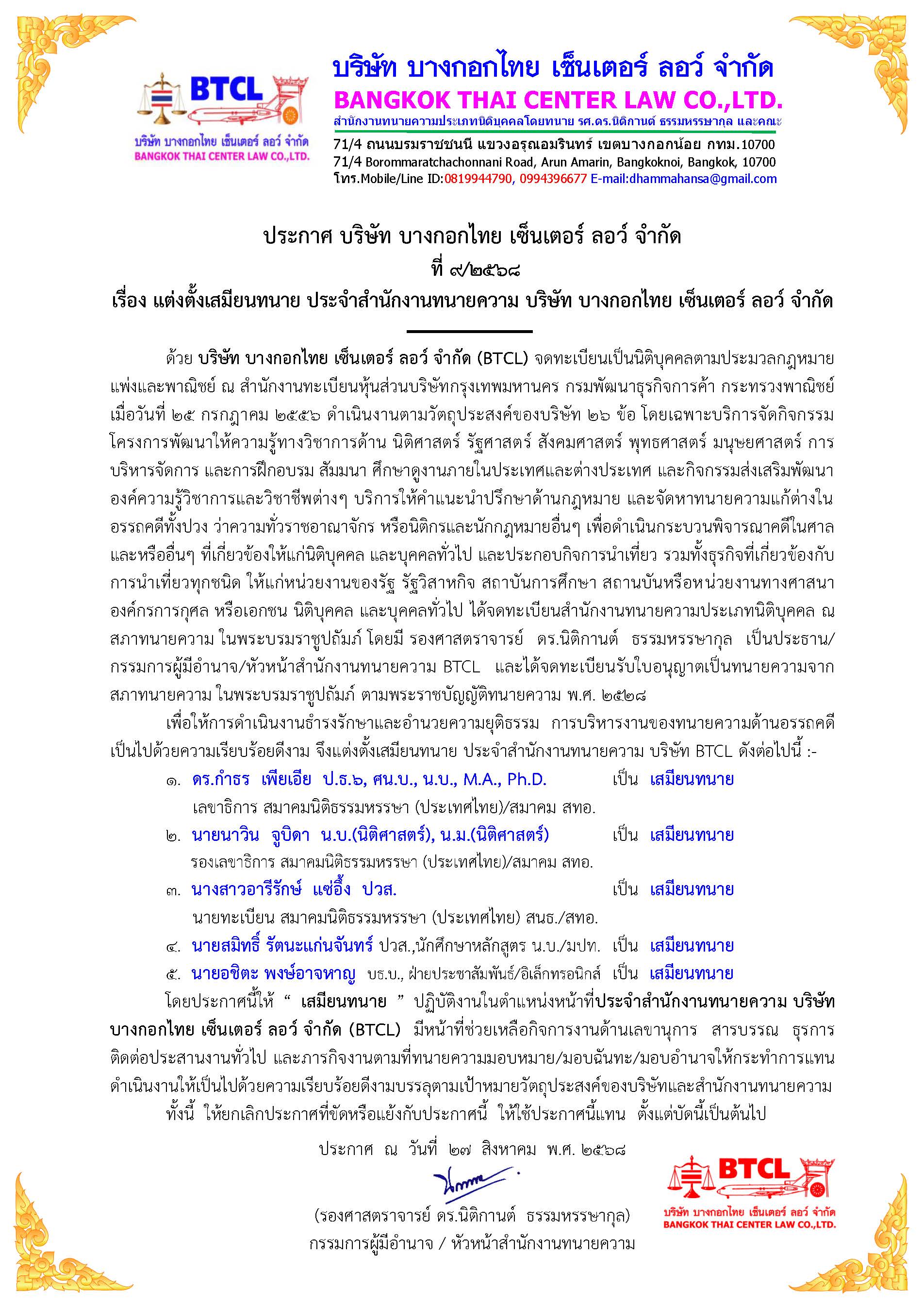 1. ผู้ช่วยศาสตราจารย์ ดร.ศิวัช นุกูลกิจ (ทนายความ/อาจารย์) นายกอาวุโส